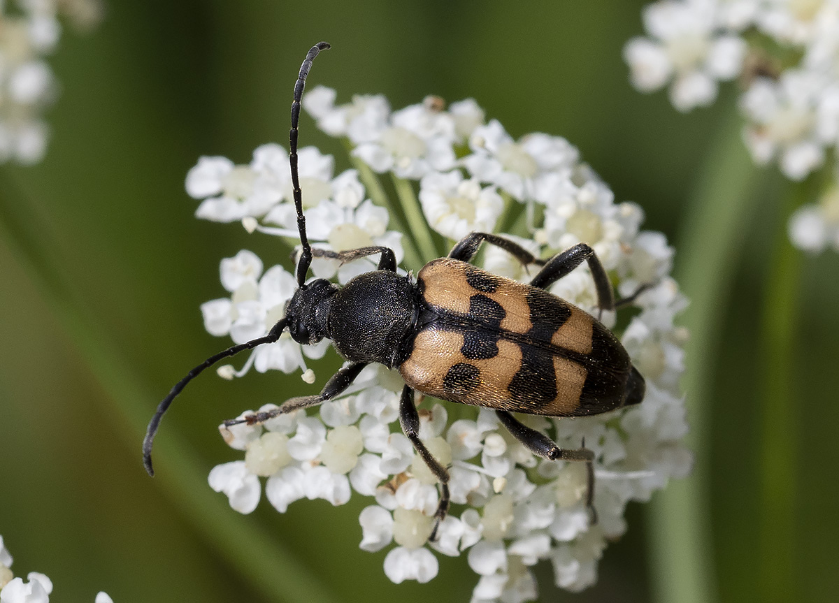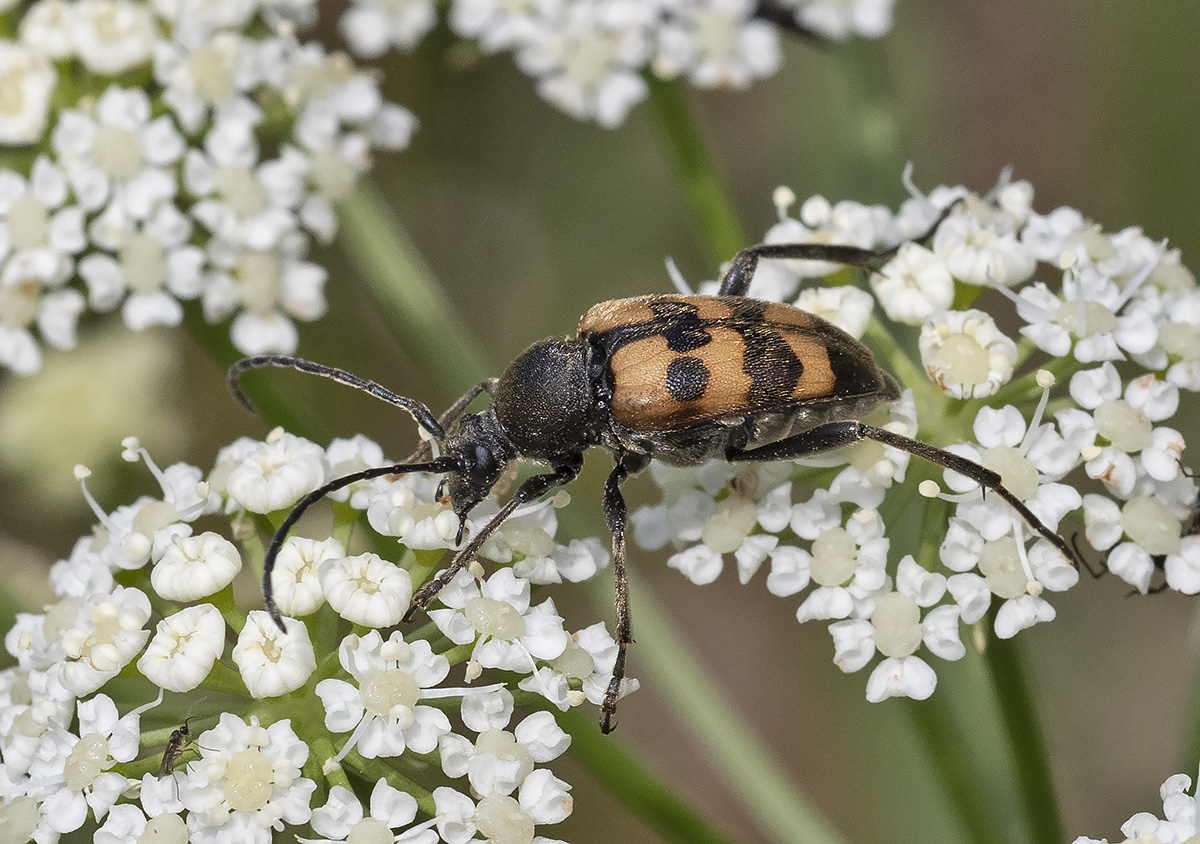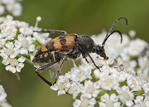 | Judolia erratica (Pachytodes erraticus). Coleottero Cerambicide. Rezzoaglio (Luglio). Il nome del genere Judolia ha origini incerte, forse è un nome della persona cui il genere è dedicato. Il nome Pachytodes deriva dal greco e significa ciccione (da "Pachys" (παχύς) =grosso). |