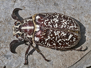 | Polyphylla fullo. Coleottero scarabeide melolontide. Il nome deriva dal greco polys (πολύς) =molti e phyllon (φύλλον) =foglia, per i molti articoli delle antenne a forma di foglia. Fullo in latino indica chi carda la lana, per i disegni a fiocchi delle elitre. Uno dei più grandi coleotteri italiani. Rezzoaglio, luglio. |