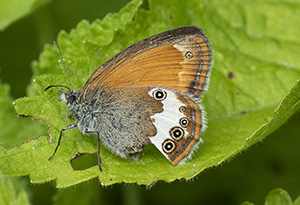 Coenonympha arcania. Lepidotteri Satiridi. Rezzoaglio, Luglio. Il nome deriva dal greco κοινός (koinós) = comune e νύμφη (númphē), = ninfa perche questo genera riunisce molte specie (ninfe). Arcania da latino arcanus = nascosto.