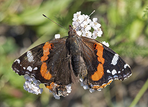 | Vanessa. Lepidottero ninfalide. Rezzoaglio, Agosto. Vanessa deriva forse dal nome di una divinità androgina, Phanes, o Phanessa, particolarmente amante delle farfalle e spesso raffigurata con le ali. Era la divinità della luce e il nome era collegato al concetto di splendore. Atalanta personaggio femminile mitologico, bellissima fanciulla amante della caccia e invincibile nella corsa. Secondo alcune versioni del mito del vello d'oro partecipò alla spedizione degli argonauti. |