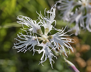 con pochi fiori. Petali di 15-35 mm, profondamente sfrangiati, bianchi, rosa o