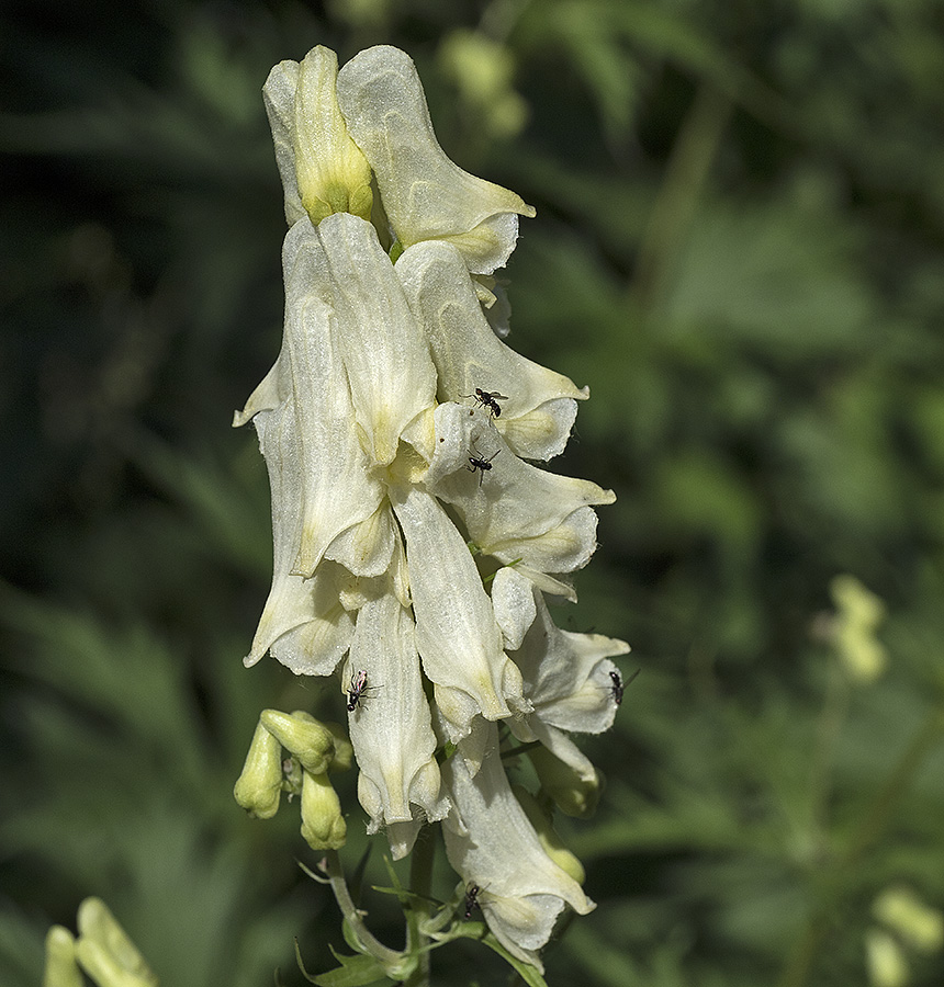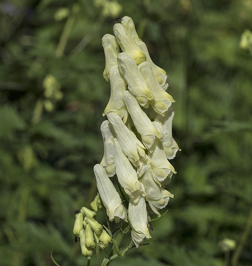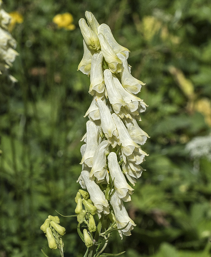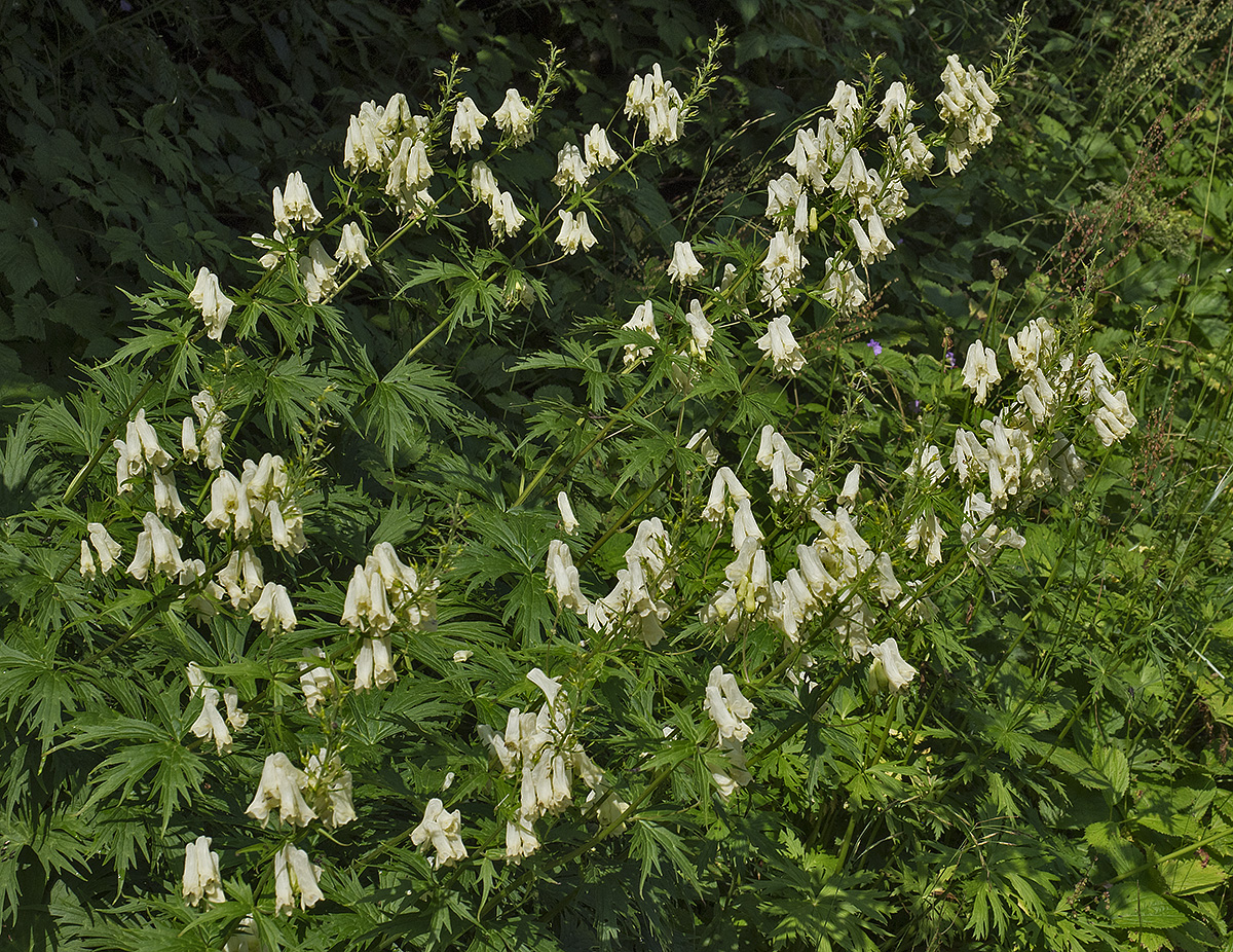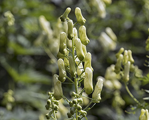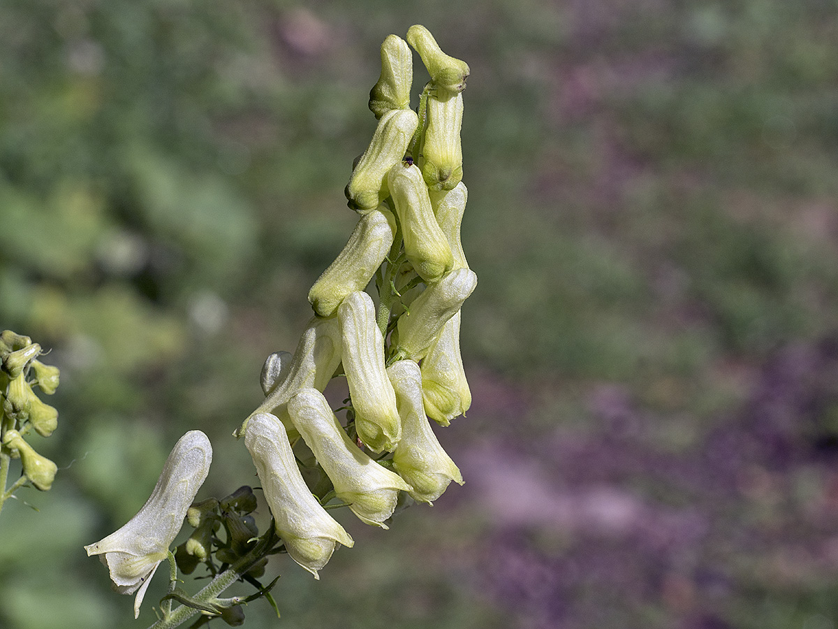 | Aconitum vulparia - (Dal greco aconiton, nome di una pianta velenosa usata per avvelenare lupi e volpi) Luparia, erba della volpe. Ranuncolacea. L'aconito sarebbe nato dalle gocce della bava di Cerbero, infuriato, mentre Eracle lo trascinava fuori dagli inferi (l'ultima delle fatiche di Eracle). (Secondo Ovidio Aconiton deriverebbe da akone, pietra, perchè la pianta spunta su terreni rocciosi) Pianta perenne, 80-150 cm, foglie palmate e molto suddivise. Fiori tubulari, bianchi o giallastri. Radure, soprattutto nei boschi di faggio. Velenosa. Rezzoaglio, Giugno, Agosto. |