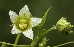 viticci a spirale. Foglie divise in 5 lobi triangolari lisci.Fiori