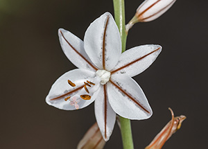 Asphodelus fistolosus. Liliacea. Roma Marzo. Attualmente la famiglia delle liliacee è stata suddivisa e l'asfodelo è classificato come una Asphodelacea. Il nome fistoloso deiriva dal fatto che le foglie sono cave. Comune anche lungo le strade. La pianta è tossica per la presenza di diversi alcaloidi. Gli vengono attribuite diverse virtù terapeutiche e si dice che sia molto efficace contro l'alopecia. A questo scopo prendere delle api bruciate, ridurle in polvere, mescolarvi del succo di asfodelo e spalmare il tutto sulla testa del paziente. Auguri! |